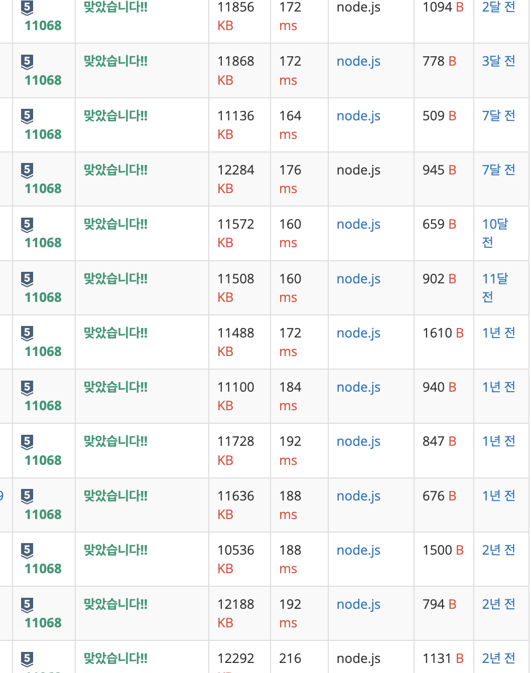 js에 대한 불신과 불만이 점점 커지는 와중 채점 기록에는 수많은 js 동료들의 흔적이 남아있었다.